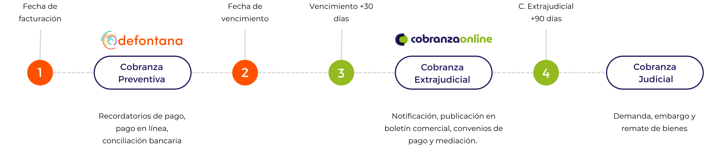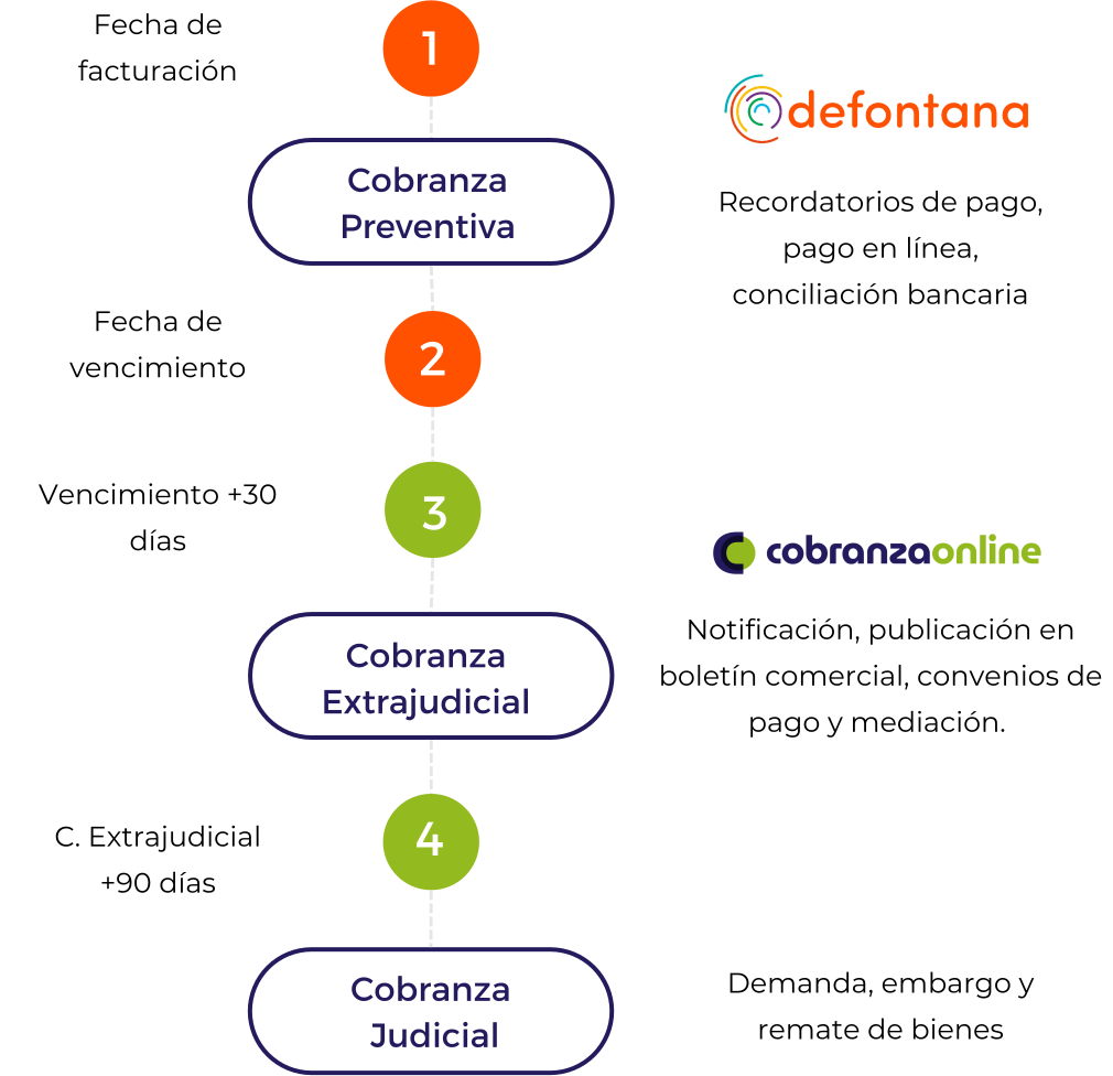 Enfocado en solucionar las causas del impago para acelerar el pago. Incluye: